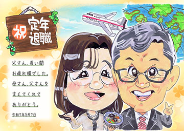 似顔絵グラフィックス結婚式の似顔絵ウェルカムボードやご両親贈呈用ボード、記念日・プレゼントボードなど、世界にひとつだけの似顔絵を