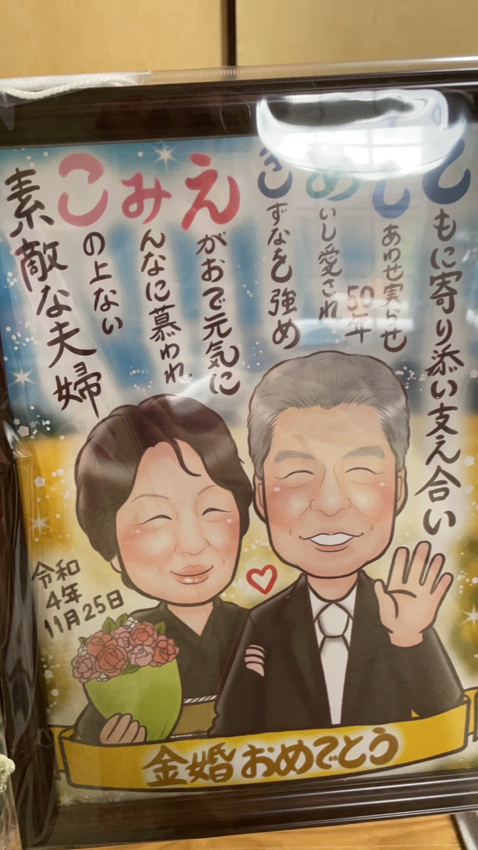 似顔絵を書いてもらう機会ってなかなかないので、写真で注文できてフレームまで付けていただけるので、とても良い記念になりました!