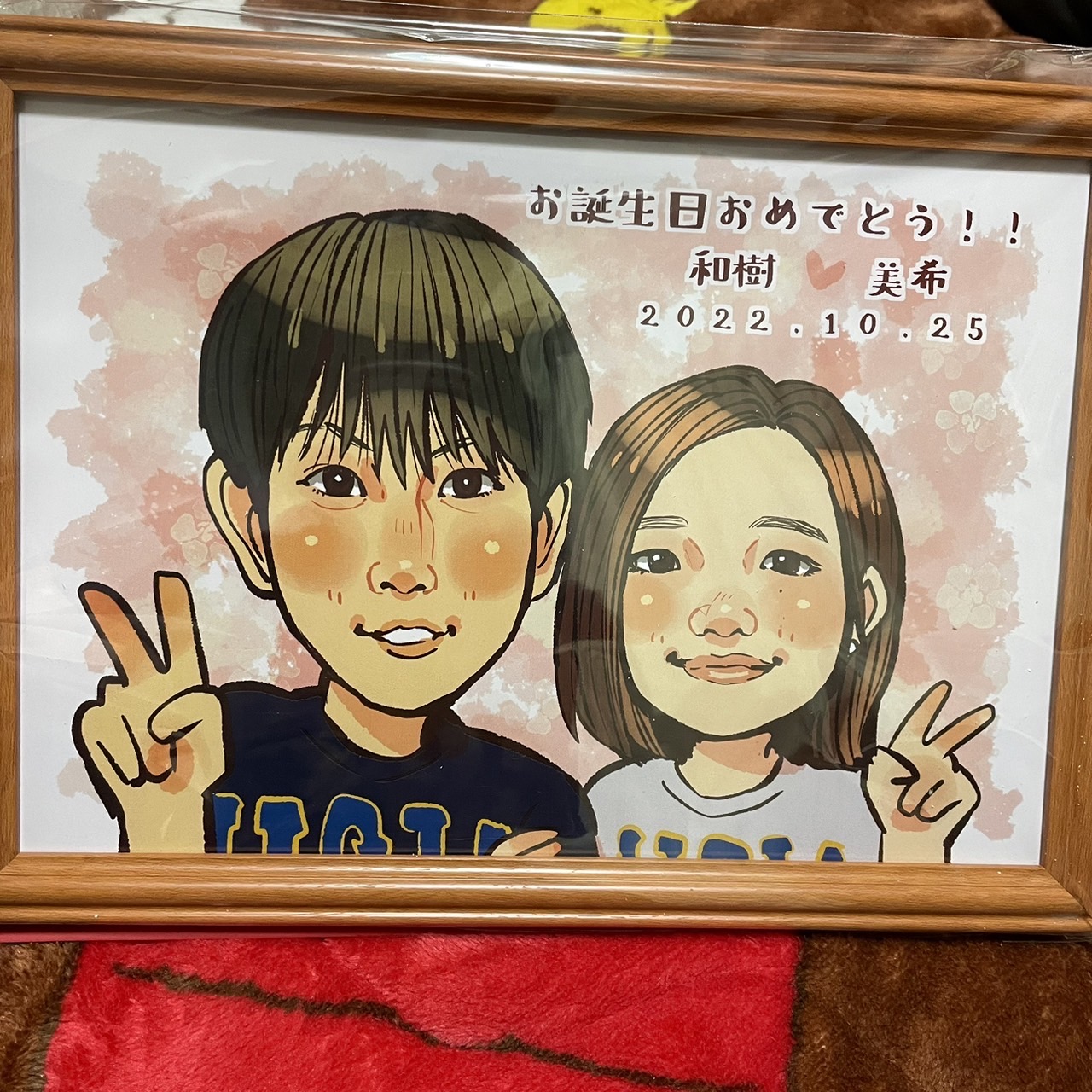 名前間違いという致命的ミスがありましたので星3です。絵は特徴捉えており満足です。あと字体が乱雑な感じなのは気になりました。 ミスがありましたがとても素早く対応していただき、渡す日にちにギリギリ間に合いましたので対応の速さも二重丸だと思います!次もまた頼もうかと考えています!とても良い品をありがとうございました。