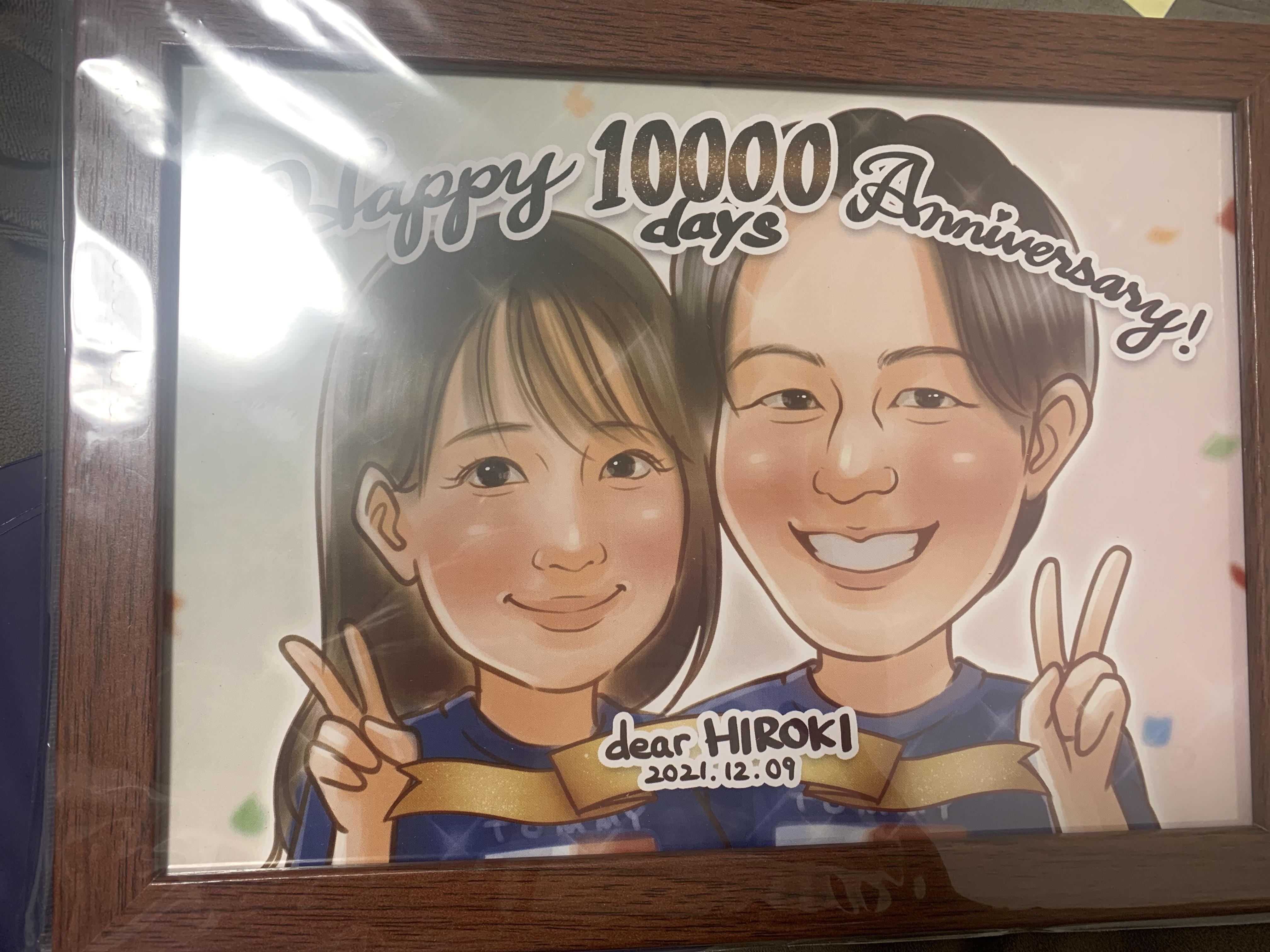 可愛く仕上げていただきました。彼の特徴を捉えてとても可愛いらしく描いていただき、見た瞬間感激して笑ってしまいましたし、彼らしくて涙が溢れました!明後日誕生10000日記念で彼に渡すのが楽しみです。 似顔絵はずっと気になっていましたが、初めて描いていただいたのが、マルさんで良かったなと思います。 また別用途でもお願いしたいです。 短い期間で可愛らしく幸せいっぱいな絵を描いていただき、ありがとうございました!