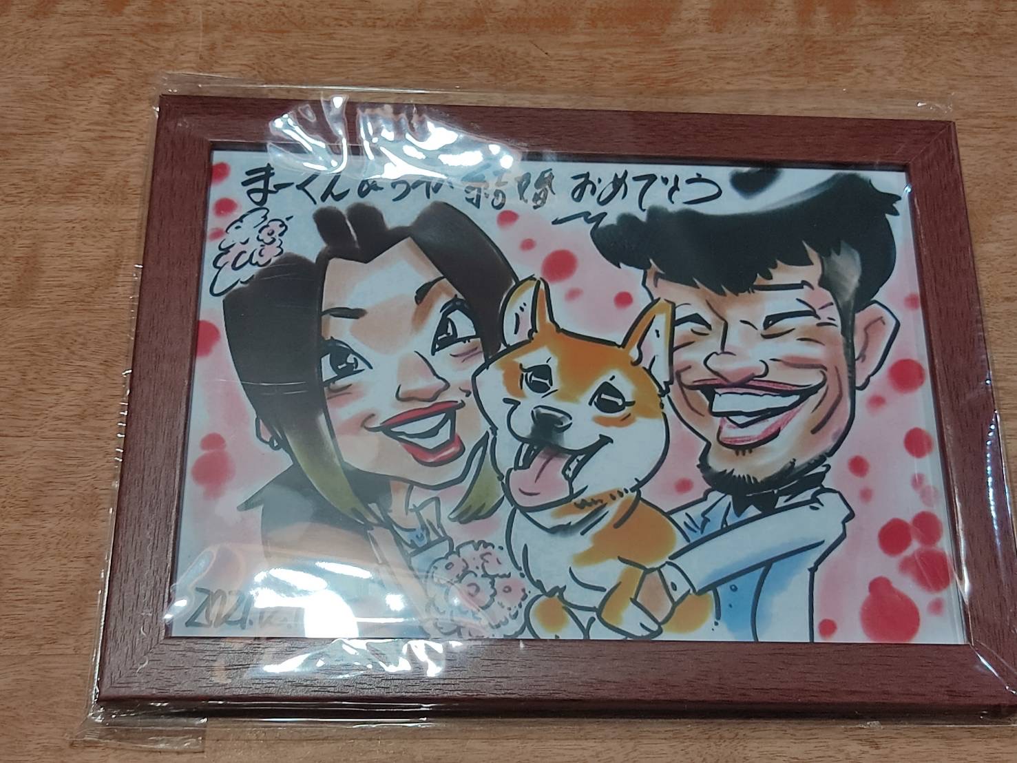 結婚する妹に送ろうと思い急に思い立ち、結婚式5日前に依頼させて頂きました。 無茶な日程での依頼でしたが、ちゃんと前日にお届け頂きました。 書いて頂いた絵のクオリティーがすごくとても感動しました。 特徴を捉えたコミカルな絵は本人達も喜んでいました。 また機会があれば是非利用させて頂ければと思います。 ありがとうございました。