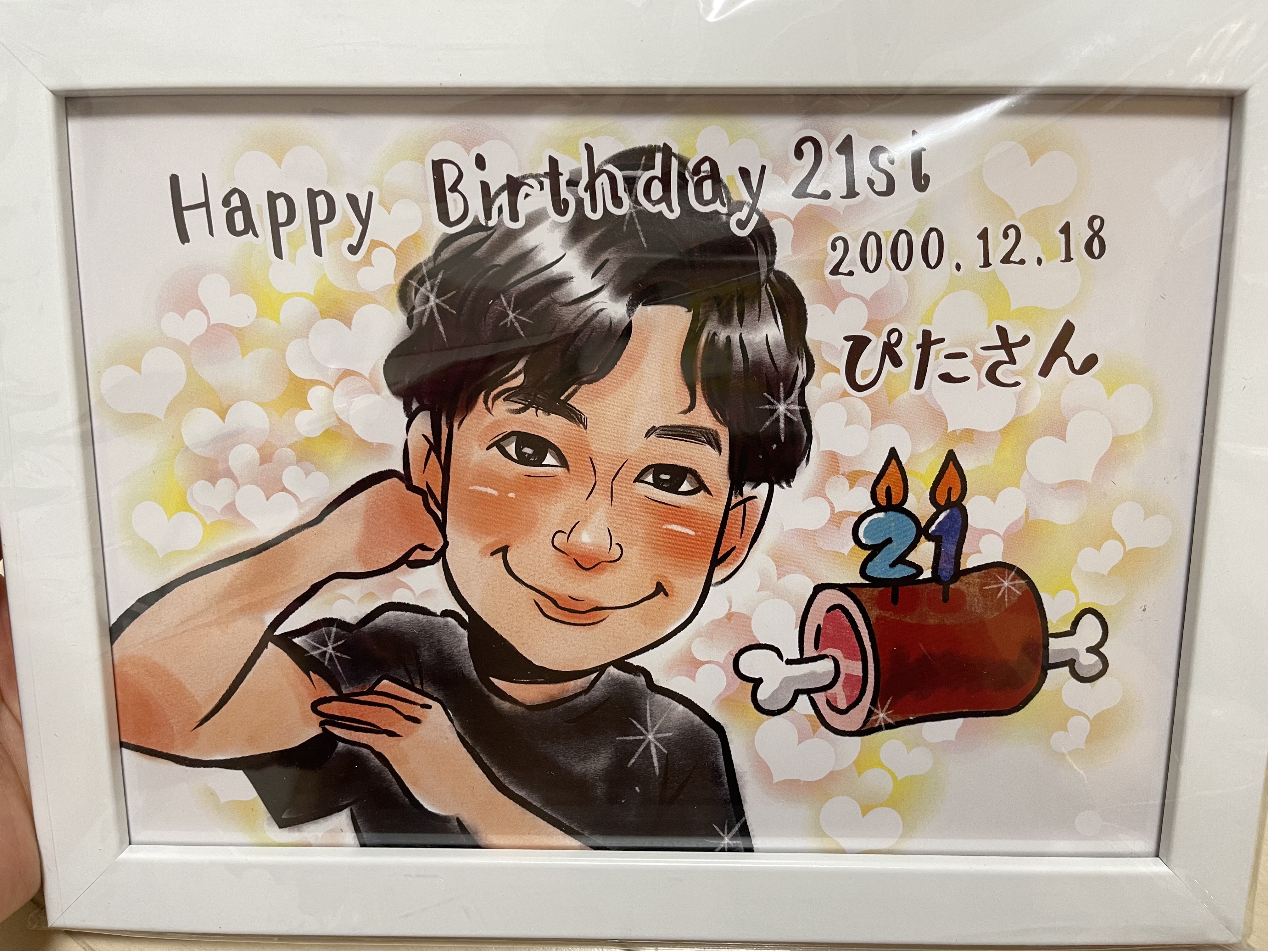 プレゼント用でしたので、あまり良い写真はない中 数枚の写真を送り、作成していただきましたが 要望通りの素敵な似顔絵を作成していただきありがとうございました。 イメージ通りの作品でした。 今回は、プレゼントようでしたが 自分用にもぜひ、作成していただきたいです。 また、お願いしたいと思います。よろしくお願いします。