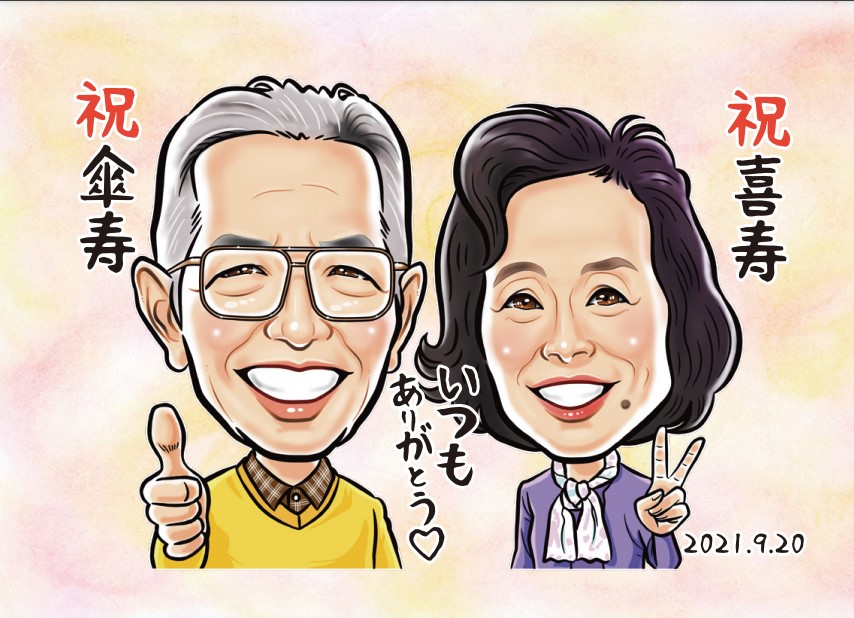 このお祝いとしてお花とも考えましたが、記念日に残るものと思い貴社に似顔絵依頼しました!