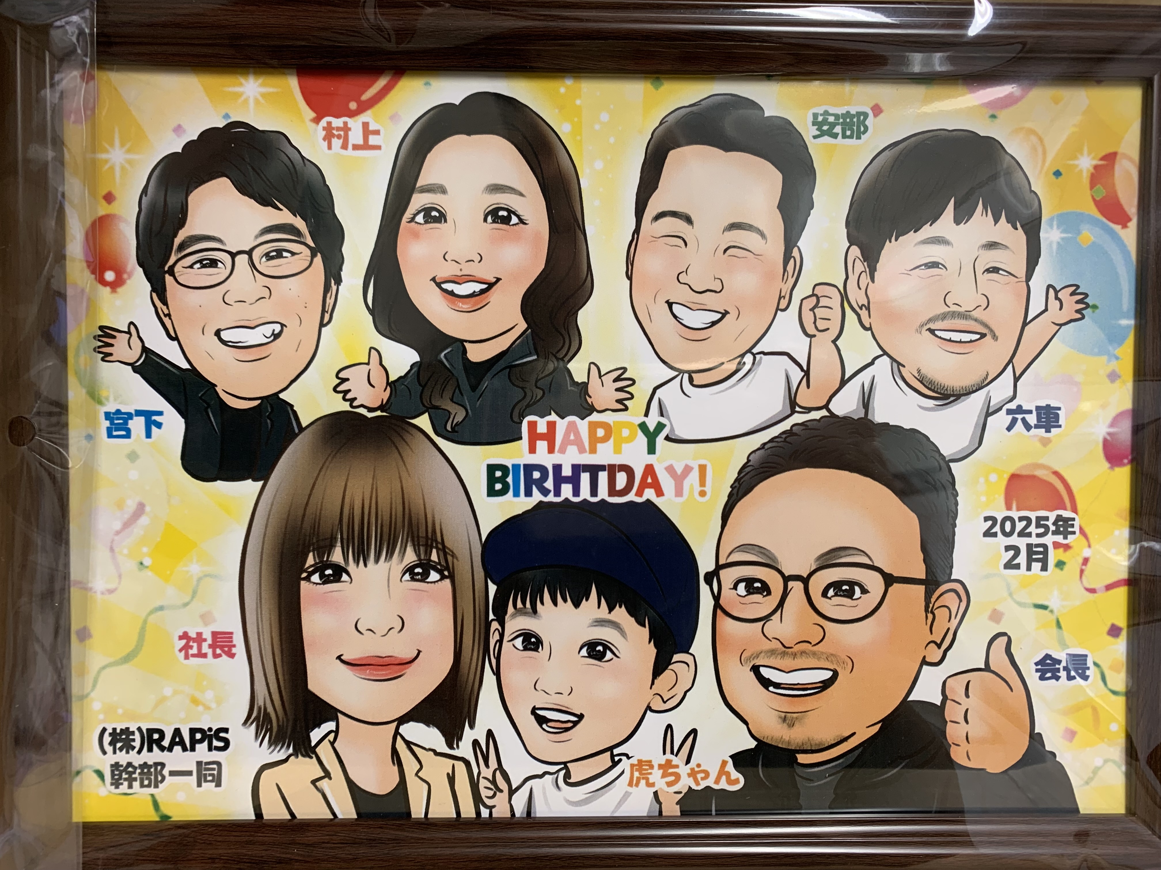 スピーディーに対応いただき、お渡ししたい日に間に合うことができ大変助かりました。そして似顔絵も似ていてみんなで喜びました。こちらの細かいリクエストも全てご対応いただき感謝しております。写真によっては顔の向きが合わず描きにくかったかもしれませんが、違和感なく描いてくださり良かったです。また機会があれば利用させていただきたいです。ありがとうございました。