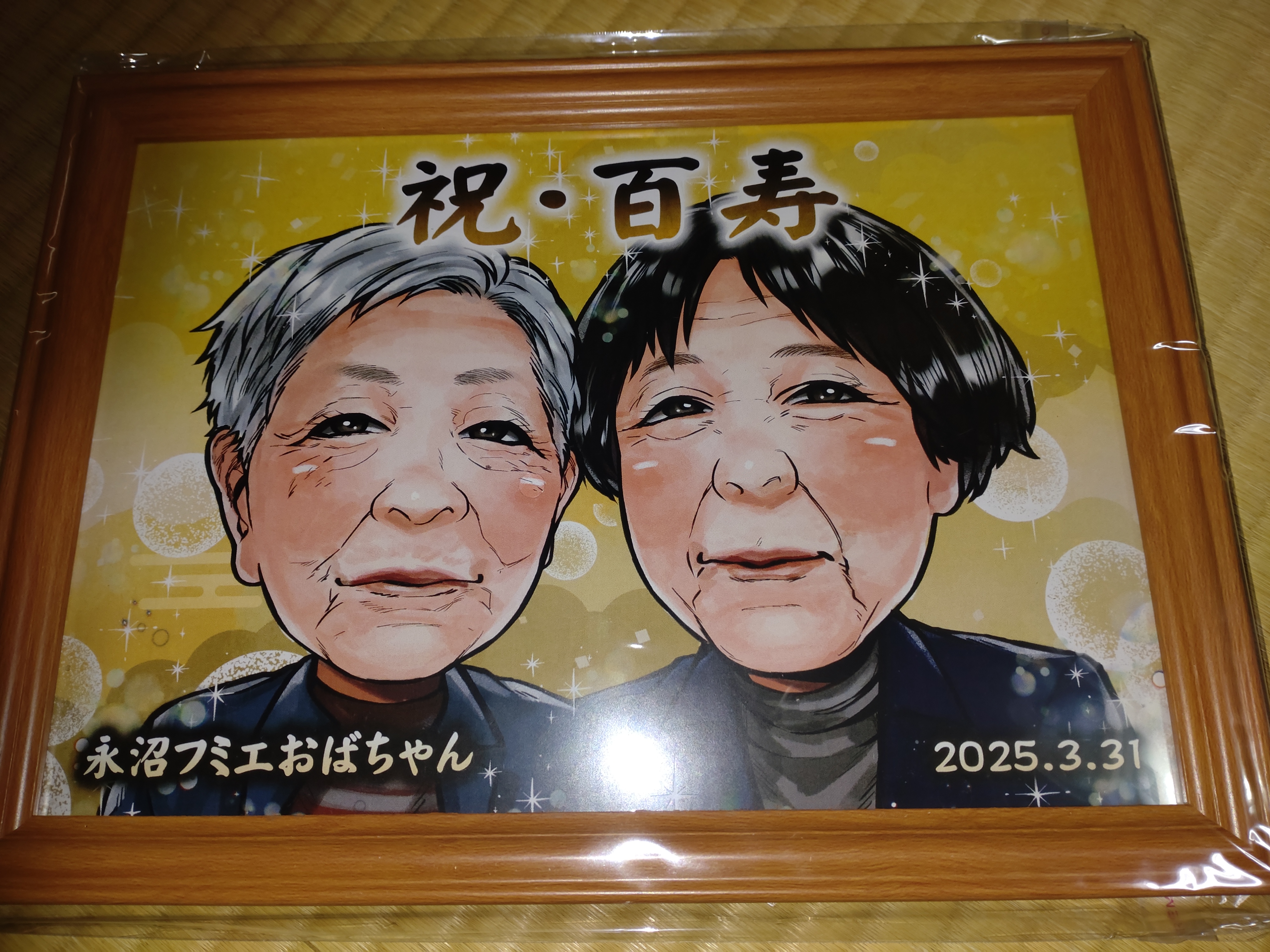 叔母の卒寿のお祝いに6人兄弟で残っている2人を描いた額を贈りました。施設に入っているし遠いのでなかなか会えないので、とても喜んでもらえました。 写真ではなく描いていただくというのが温かい感じがして良いですね! 母の卒寿が4月なので、またお願いしたいと思います。どなたにお願いしたかはっきり覚えていないのですが、なおさんかはるはるさんかなと思います。 写真を添付するのがなかなかできなくてこまりましたあ。