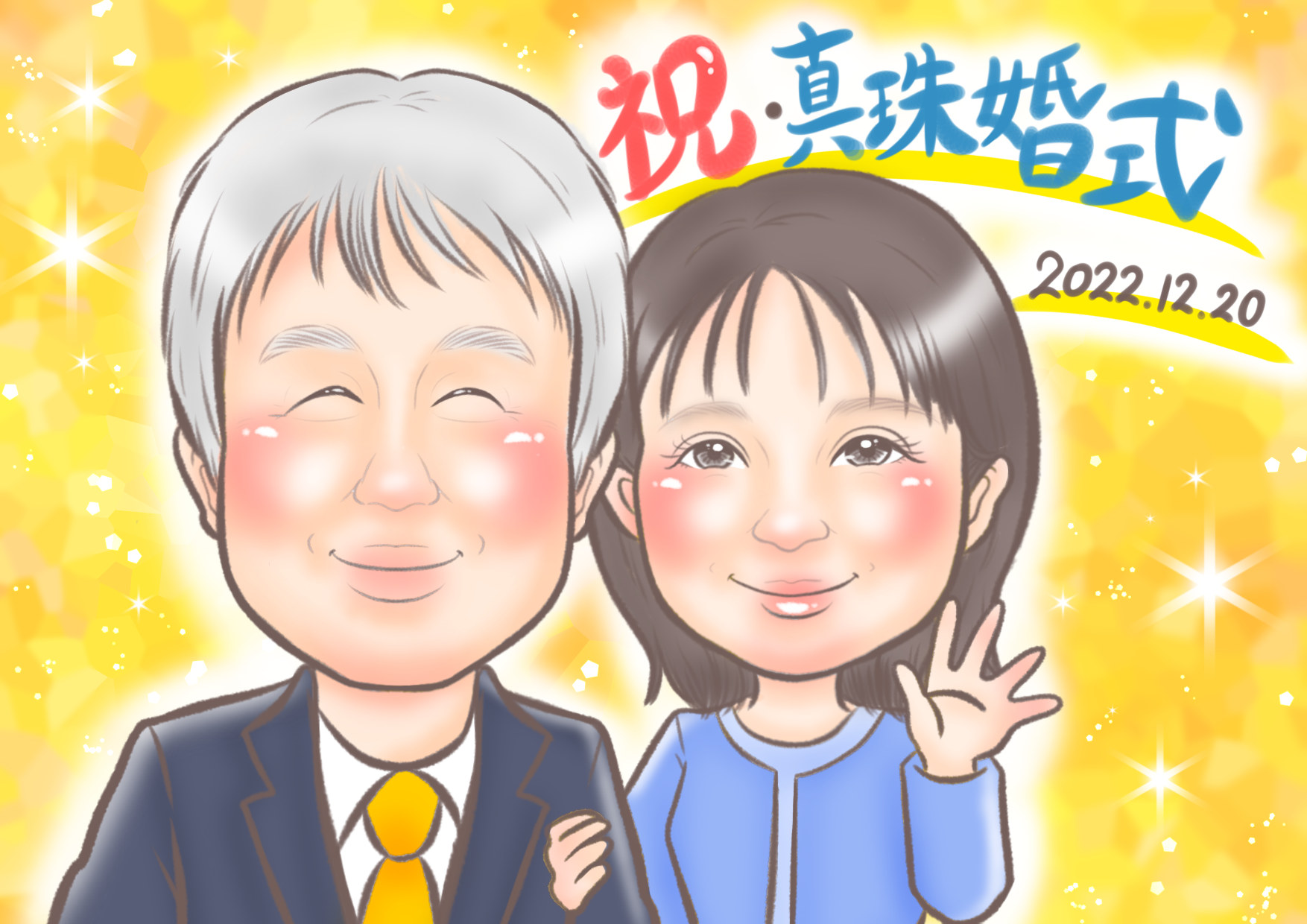 以前父の還暦祝いにこちらで依頼した似顔絵をプレゼントしたところ大盛り上がりでとても喜んでもらえたので、今回は母の還暦祝いに前回と同じ方でリピートしました。